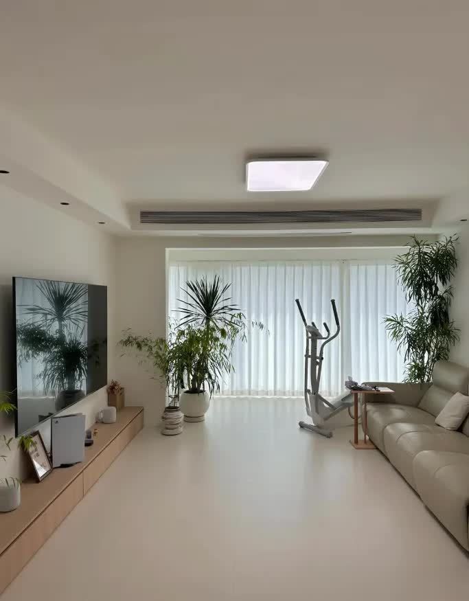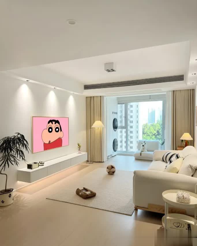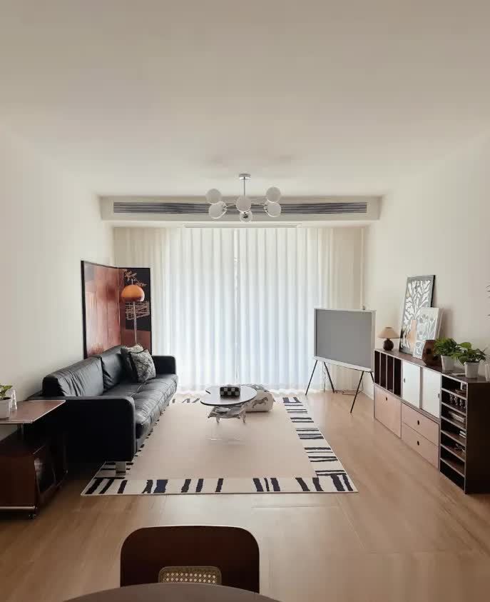 若客厅使用挂机空调能满足需求,会更简单实惠,视觉上不拥堵,不占空间,减少后期家务打理,将钱花在刀刃上,体现刚需房价值。