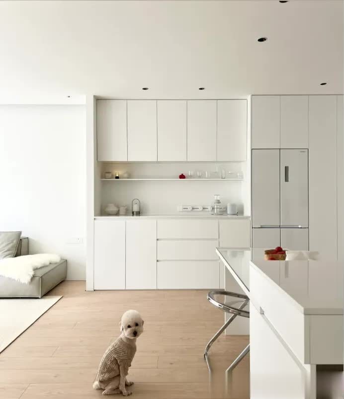 01.定制开放格尽量少做客餐厅承担了家中一半的收纳功能,定制规划时需克制,具备规划与审美,切勿盲目跟风做过多开放设计,否则后期不仅效果翻车,家务量还会翻倍。