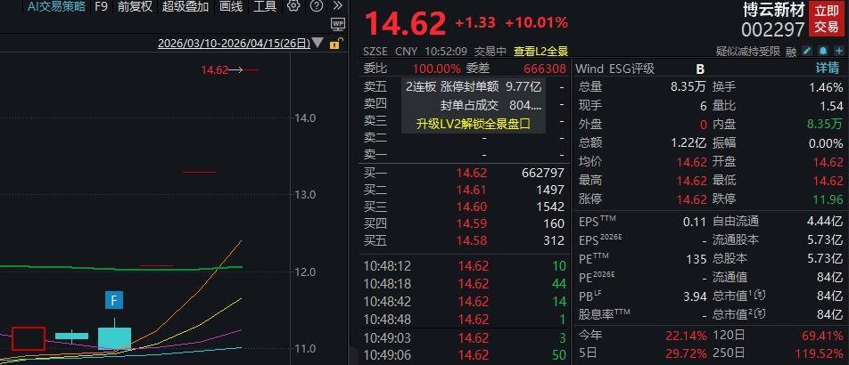 博云新材此前披露,预计2026年第一季度归属于上市公司股东的净利润为1.11亿元—1.42亿元,同比增长11194%—14349%。