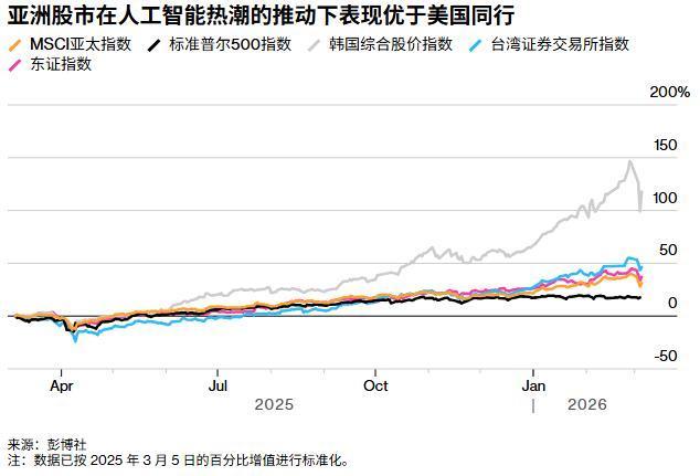伊朗局势的紧张升级对亚洲股市造成的冲击尤为显著,这在一定程度上归因于该地区对经霍尔木兹海峡运输燃料的过度依赖。除此之外,市场对于持续供应中断可能引发全球经济放缓的担忧与日俱增,进而担忧这会削弱亚洲关键出口产业的活力。在此背景下,投资者纷纷选择从近期由人工智能热潮推动的股市涨势中获利了结,尤其是过去一年表现抢眼的韩国股市和中国台湾地区股市。